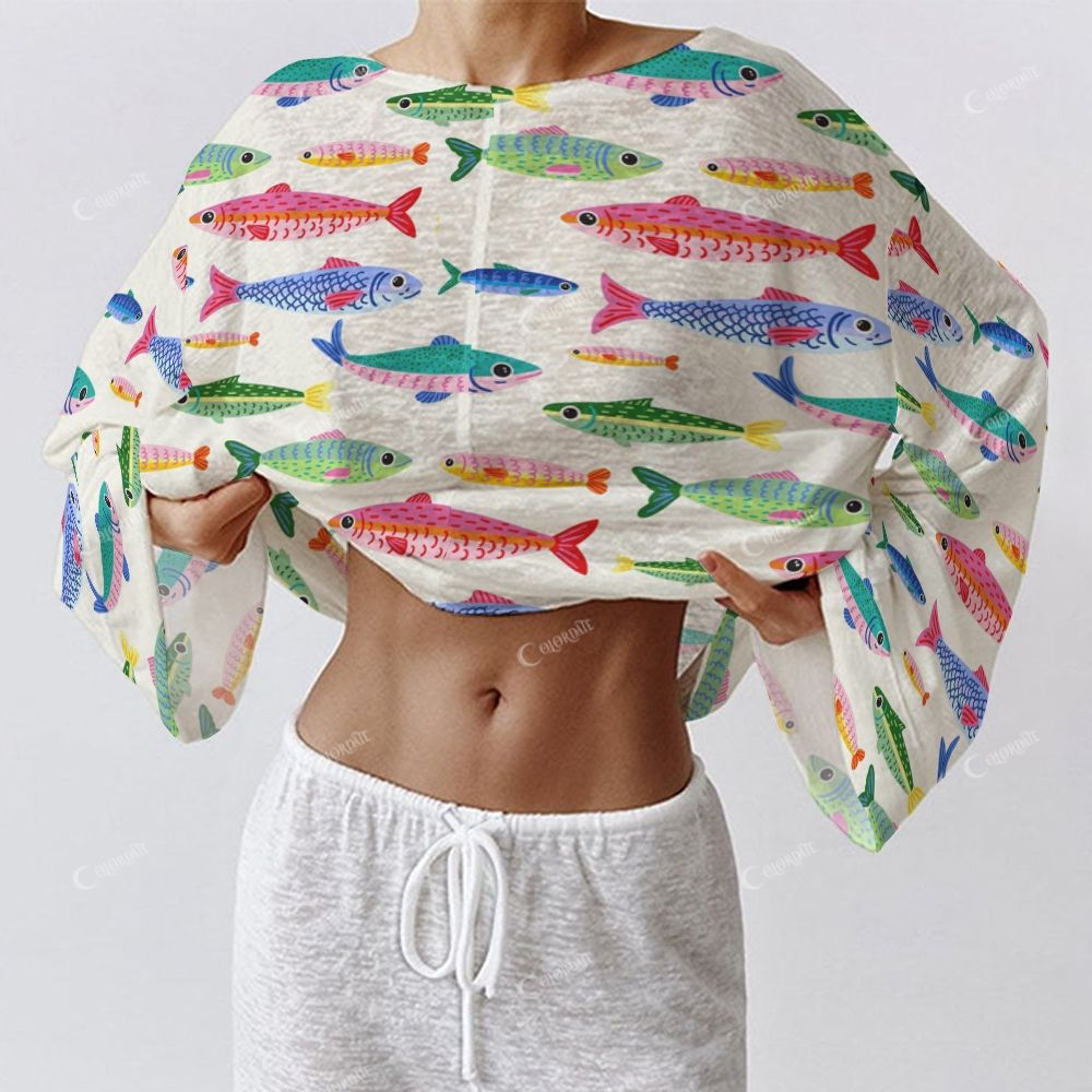 Colordate Women's Colorful Fish Print Long Sleeve Cotton Homewear Set