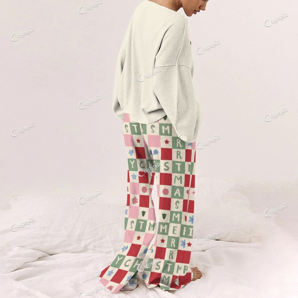 Colordate Women's Let's Get Merry Print Long Sleeve Pajama Set