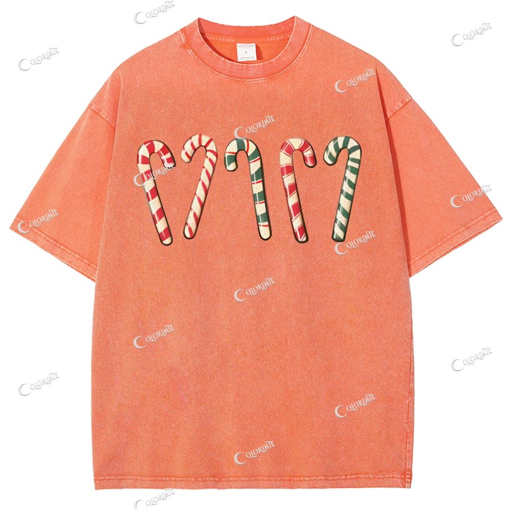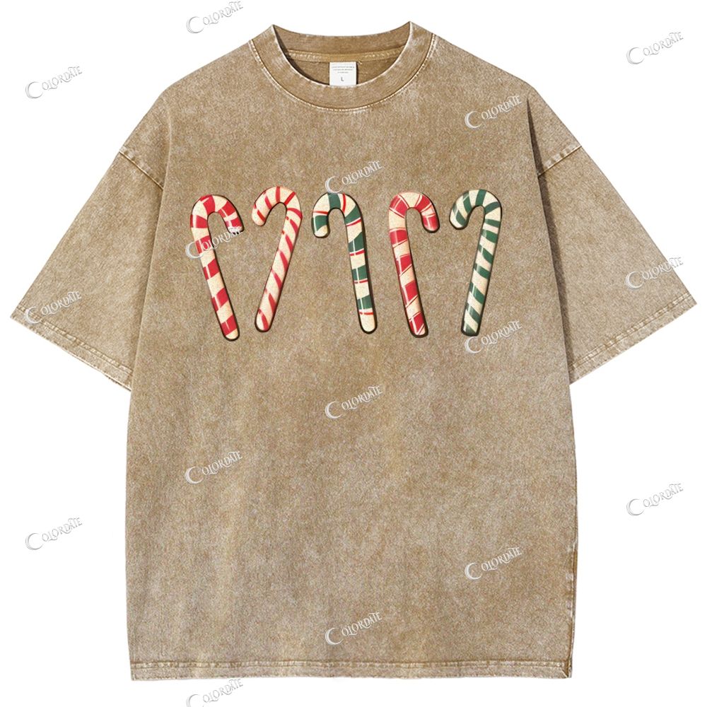 Unisex Christmas Simple Candy Printed Washed Tee
