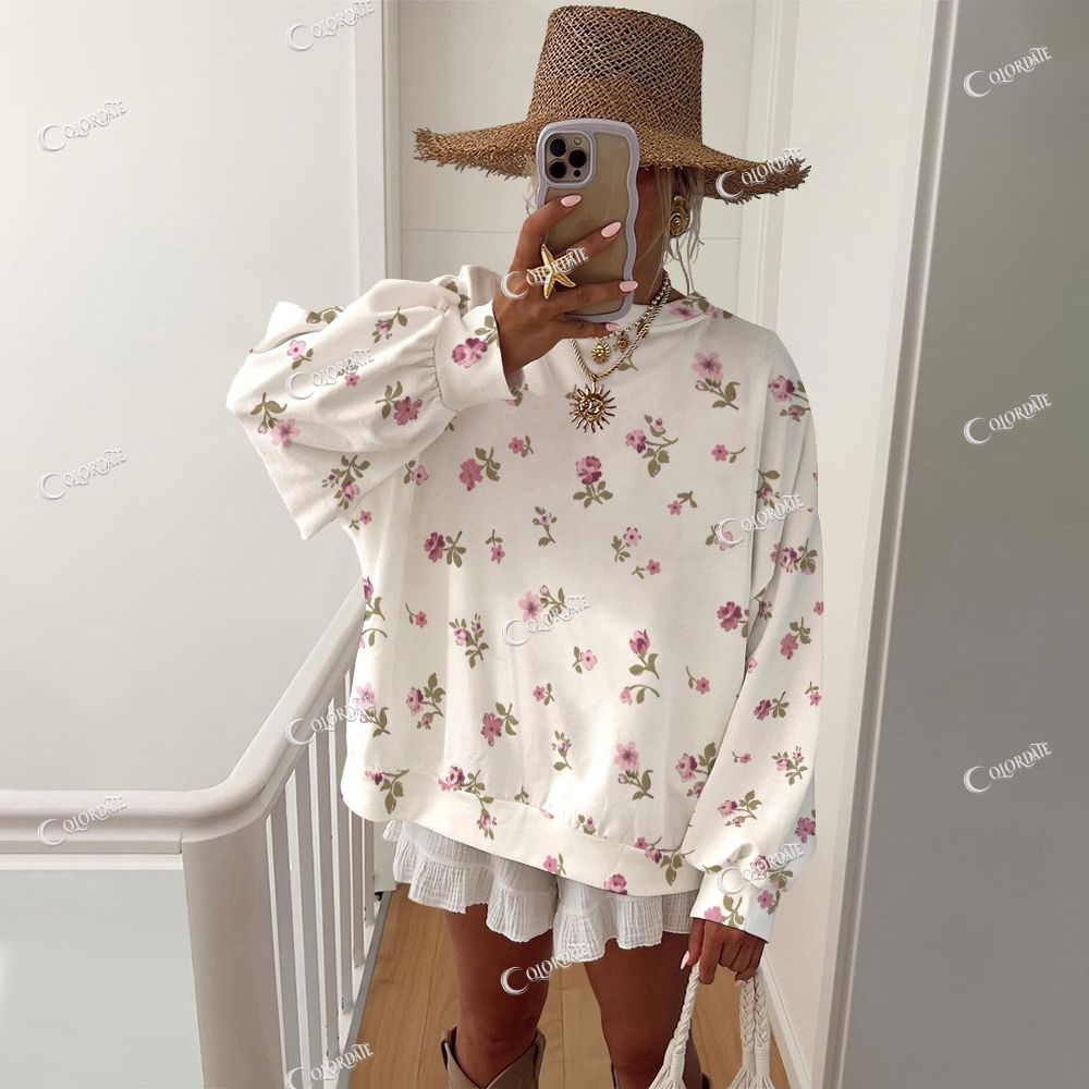 Women's Floral Pink Casual Crew Neck Sweatshirt
