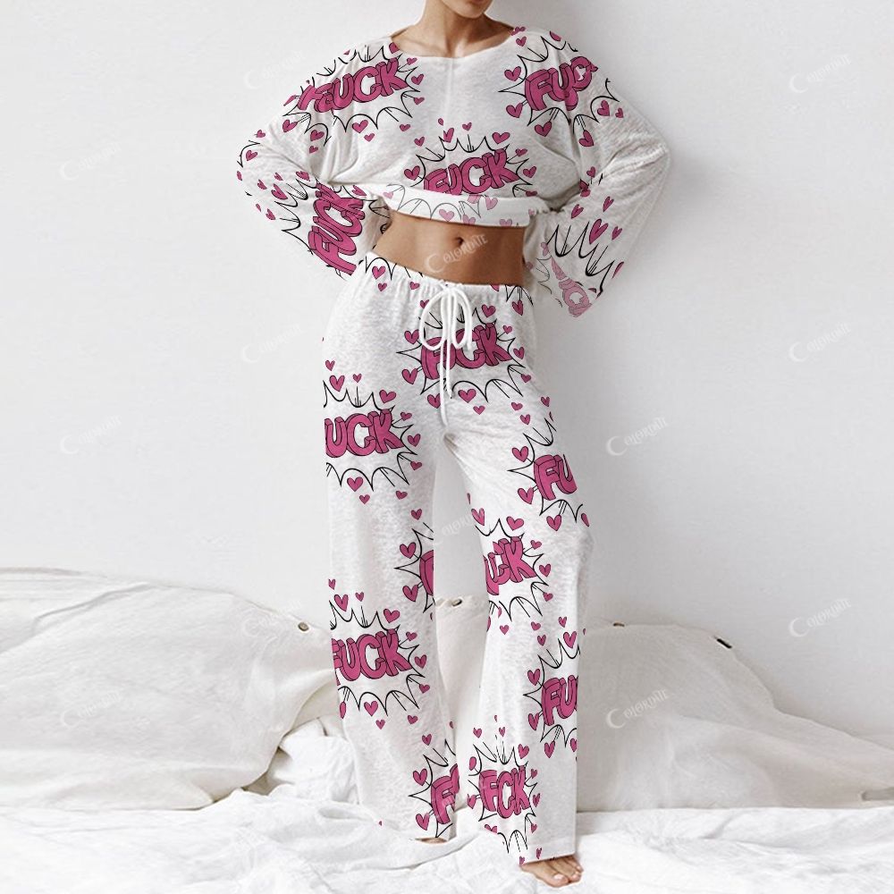 Women's Long Personalized Slogan Sleeve Homewear Set