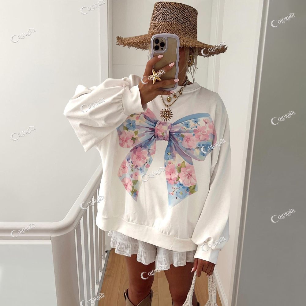 Women's Romantic Flowers With Bows Casual Crew Neck Sweatshirt